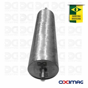Polia Magnética Oximag, desenvolvido para substituir a polia convencional de esteiras transportadoras ou outros sistemas, mantendo as suas dimensões exatas. Sua função será reter automaticamente o material ferroso contaminante transportado pela esteira, que geralmente se encontram na camada inferior do material.